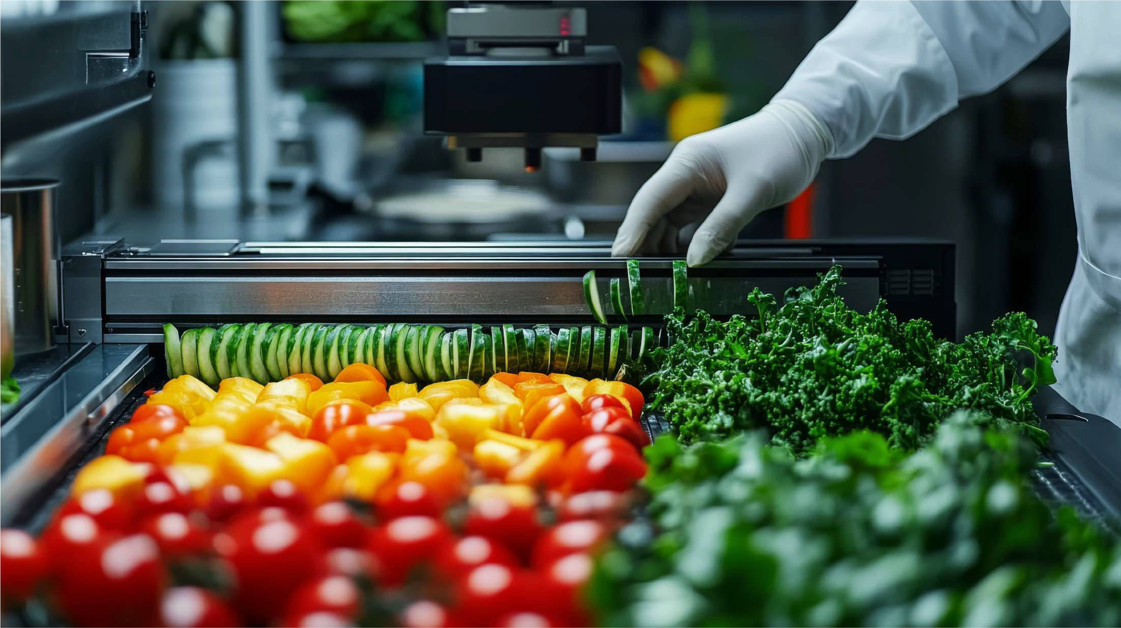 蔬果於急速冷凍前進行殺菁(blanching)處理,有效預煮分熟並鎖住營養, 在後續烹調加工中不會回縮變黑,更可降低耗材與能源耗損,提升作業效率。